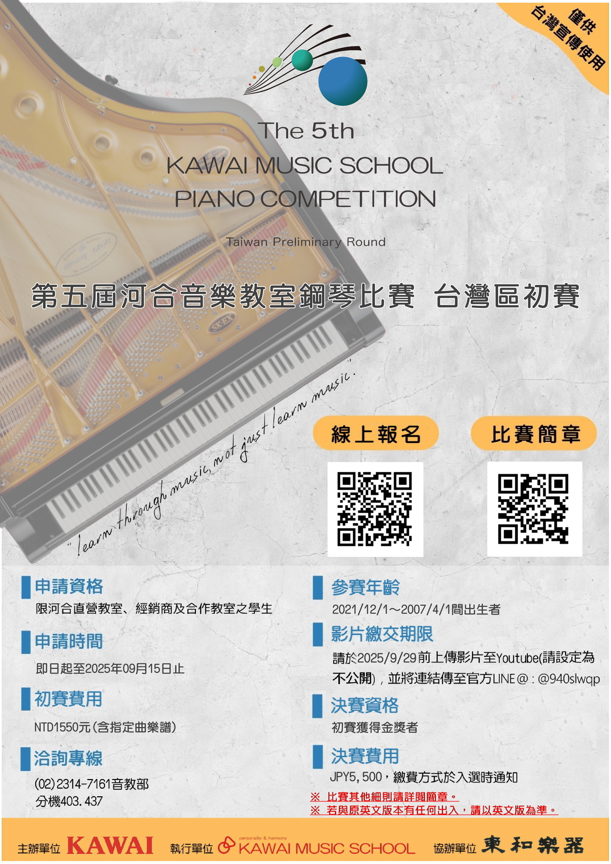 第五屆河合音樂教室鋼琴比賽 台灣區初賽報名開跑