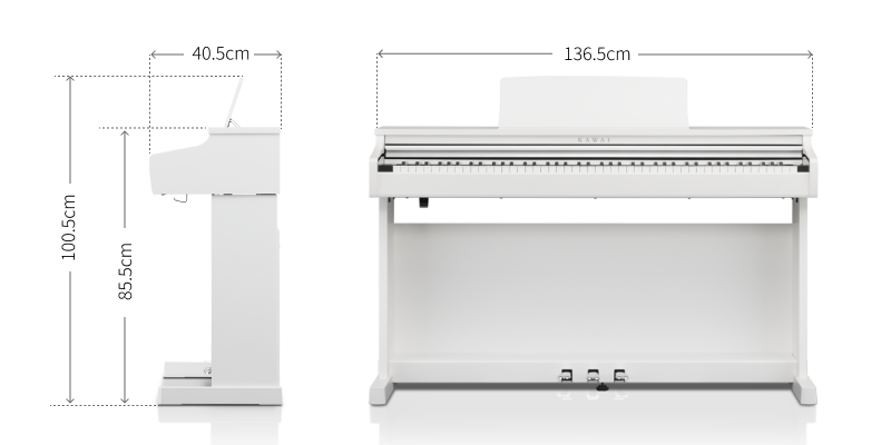 ● 踏板離地的高度與鍵盤的位置關係都與原聲鋼琴接近