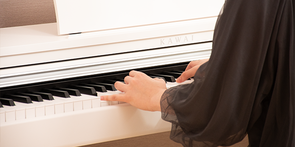 KAWAI獨特的靜音設計,大幅度的減少琴鍵敲擊聲,即使在夜間或公寓大樓也能安心練琴。