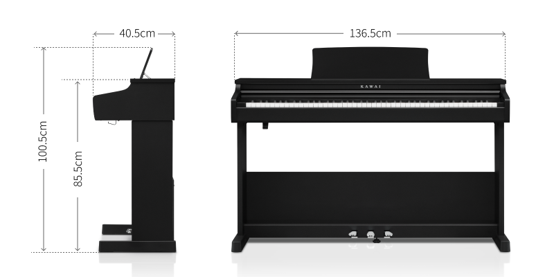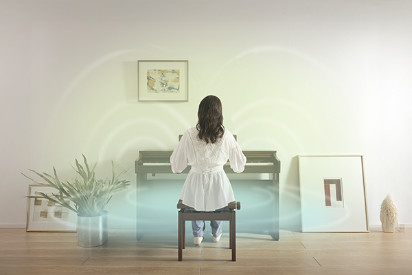 KAWAI獨特的靜音設計,大幅度的減少琴鍵敲擊聲,即使在夜間或公寓大樓也能安心練琴。