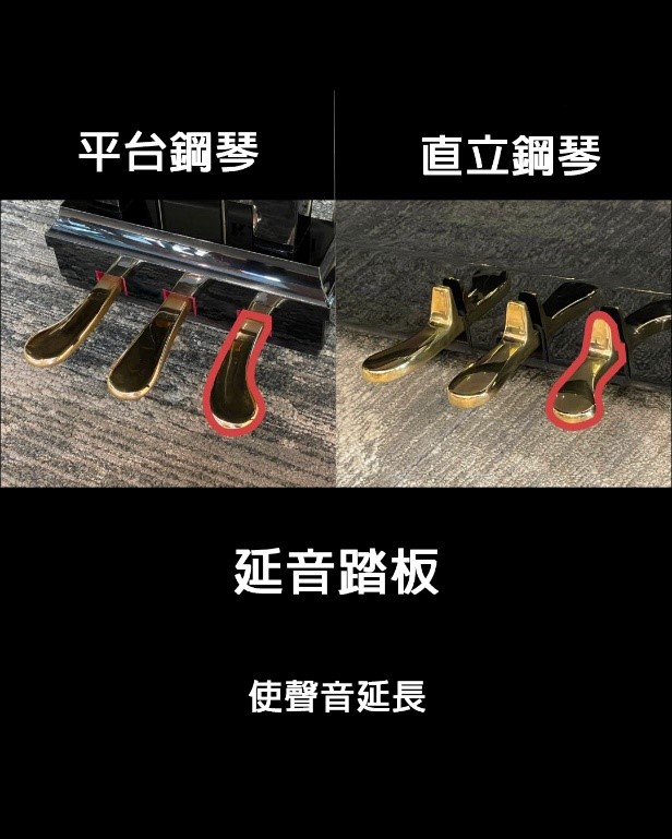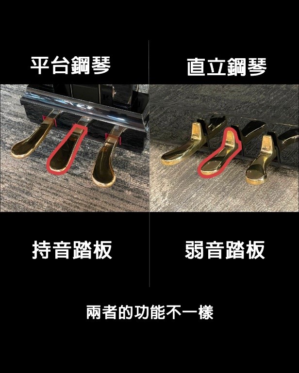 二、中間踏板:平台鋼琴與直立鋼琴的功能差異解析 (持音/弱音踏板)