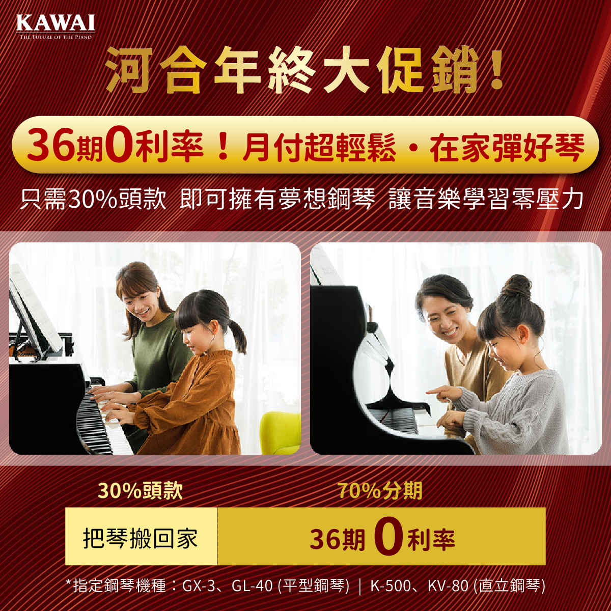 KAWAI河合年終大促銷_36期零利率