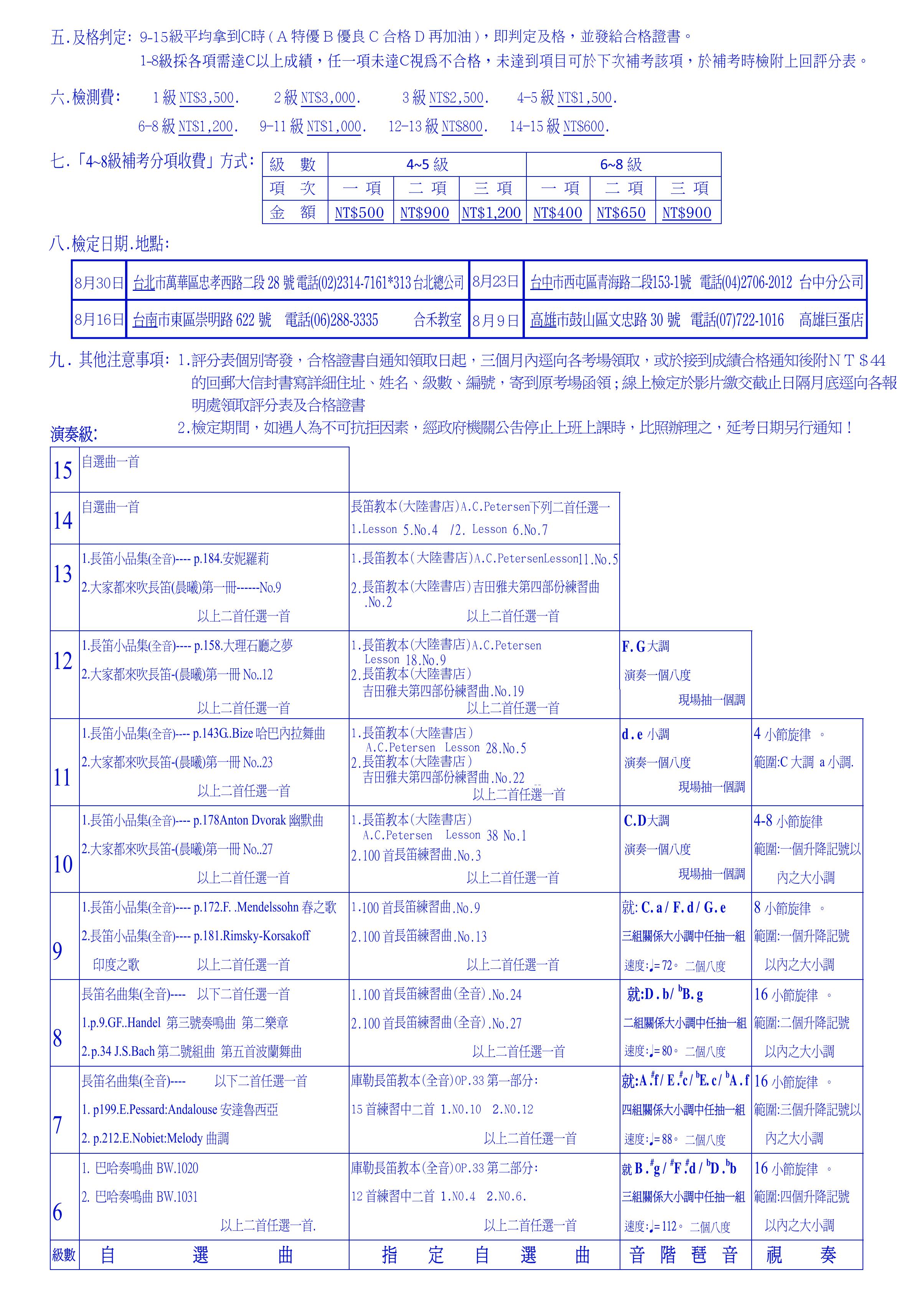 【簡章】2026夏季長笛1-15級檢定簡章|報名簡章