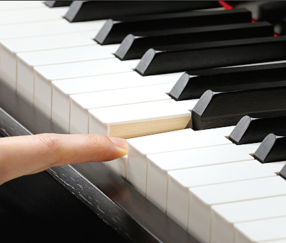 鋼琴鍵盤的細部設計。另外,裝設了3個感應器感知鍵盤動作,使演奏表現力接近平型鋼琴。此外, 透過Grand Feel Action III實現更加流暢的觸鍵感。並採用全新的音槌制動器與特殊樹脂的打弦器構造,讓您能夠用接近平型鋼琴的觸鍵感來演奏。