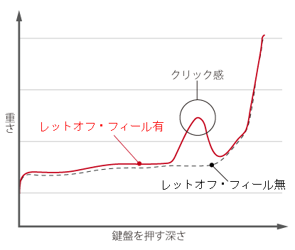 Let-off (小觸鍵)是慢慢按下並放開平型鋼琴特有的鍵盤時的按壓感。 Let-off feel是能夠實現這種細膩按壓感的結構。