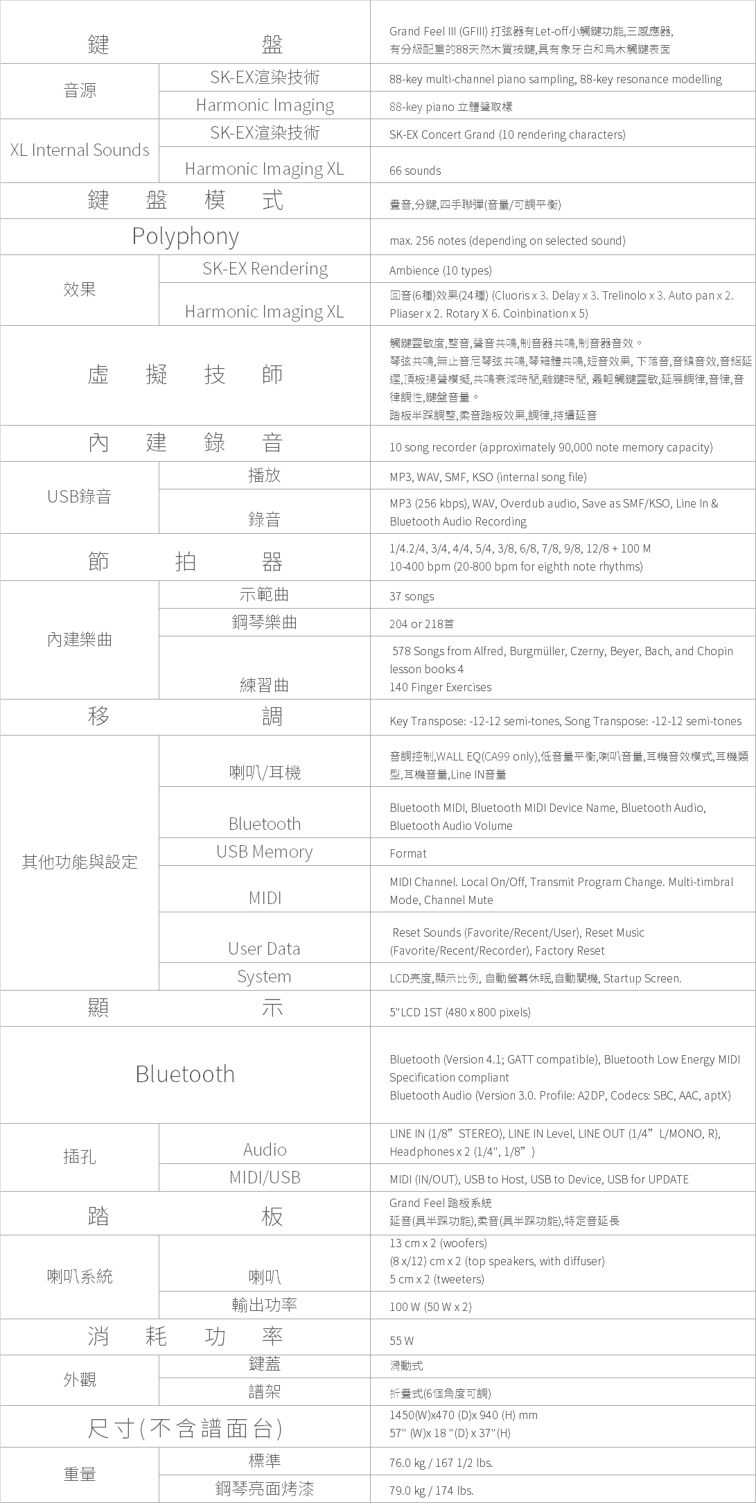 Bluetooth® 的世界商標及標誌為Bluetooth SIG, Inc. 所有之登錄商標, 株式會社河合樂器製作所經許可使用這些商標。